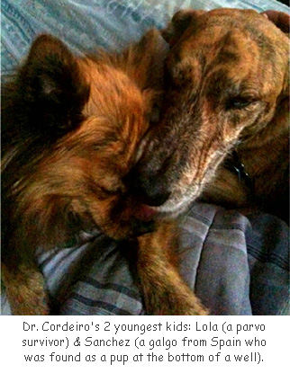 In addition to his veterinary training and ongoing continuing education, Dr. Cordeiro completed his Masters in Clinical Mental Health Counseling with an emphasis on grief counseling. Dr. Cordeiro shares his home... his heart... couches... and most of his bed... with Sanchez, Lola and Auntie (Antigone). In his free time, Dr. Cordeiro enjoys singing and playing the guitar, snowboarding, hiking and meditation, and most of all spending time with what he loves most in this world... his family. Dr. Cordeiro is an active member of several professional and humane organizations. Some of these include: |