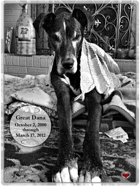 I will always cherish the time I had with her. I miss her terribly. But she left me with such beautiful memories. I know she is at peace now and will never suffer. And she will always be great, Great Dana! |
