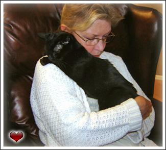 The entire trip back to Fort Collins, Maybee hugged Kathy and nuzzled her with her nose, but would not ease up on the hug. From that time on, they were inseparable. At night in bed and during the day while Kathy sat knitting, Maybee was always near her. I started to wonder if Maybee knew of Kathy's secret illness. And I wonder now if Maybee was sick at the time we adopted her, for the bond they experienced was something indeed very special. |
