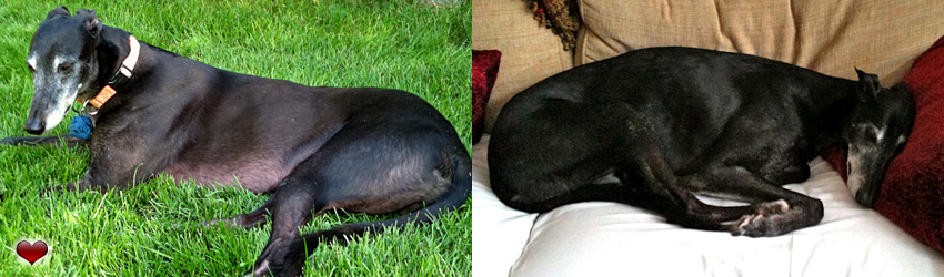 Winston didn't have a competitive bone in his body. The first time I took him to a dog park, I was delighted to see several other greyhounds and looked forward to seeing him run with them. Instead, he said hi to them, then visited with all of the humans until a basset hound came in. He decided to run with the slowest dog in the park and made sure to stay a step behind so the basset hound would have the pleasure of bragging that he was faster than a greyhound. He never really got the hang of playing – he was too big and uncoordinated – but when he did, it was always with the smallest dog he could find. I was lucky enough to have this loving, silly, magnificent beast for almost seven years. He was sweet, kind and brave until his last really bad breath. I hope he is lying, flat as a pancake, sunning himself on the big grassy dog park in the sky, occasionally rousing himself to play with a Chihuahua or run with a basset hound. Rest in peace. You will never be forgotten. With love from Maria, Molly and Sashi